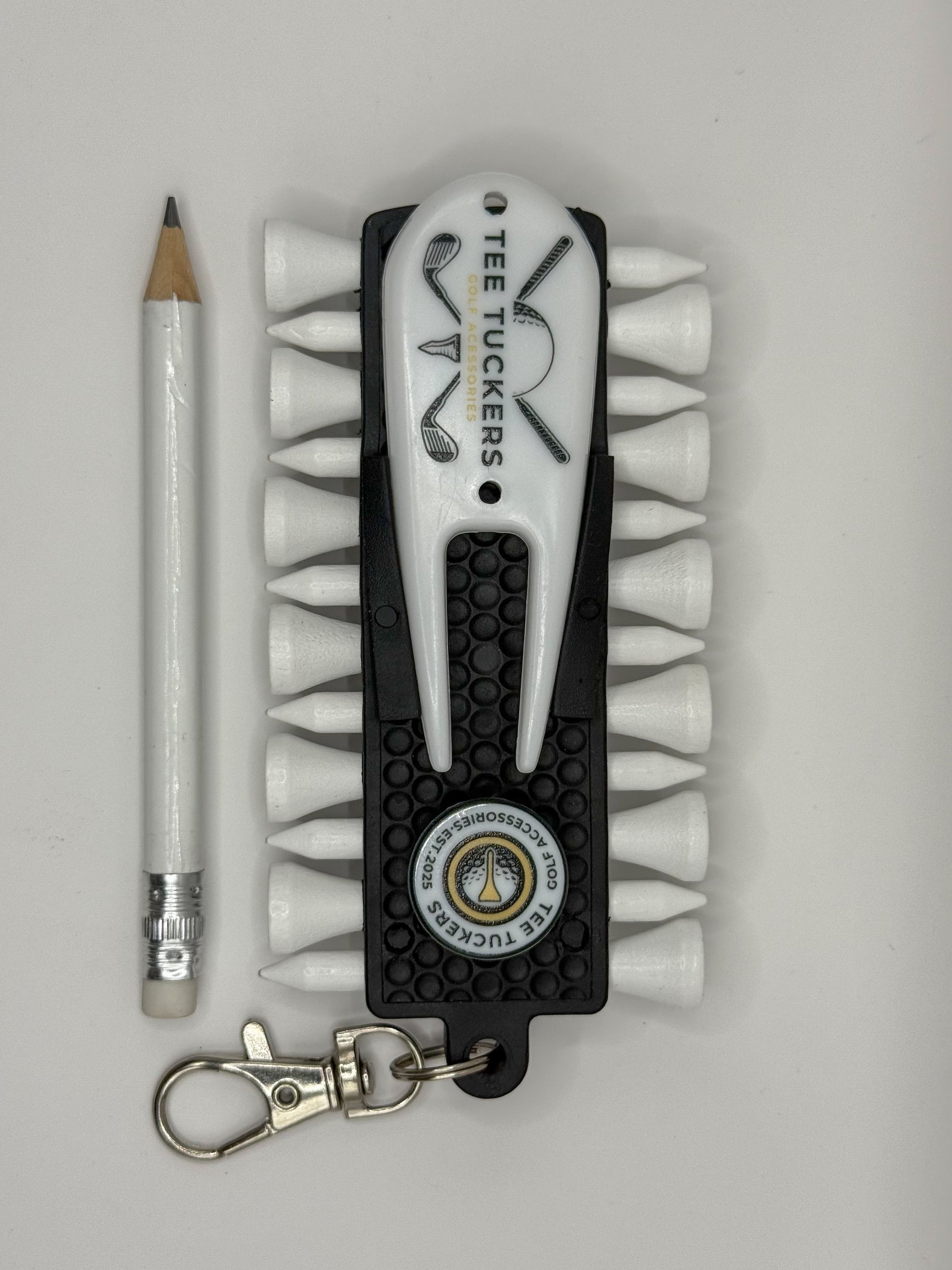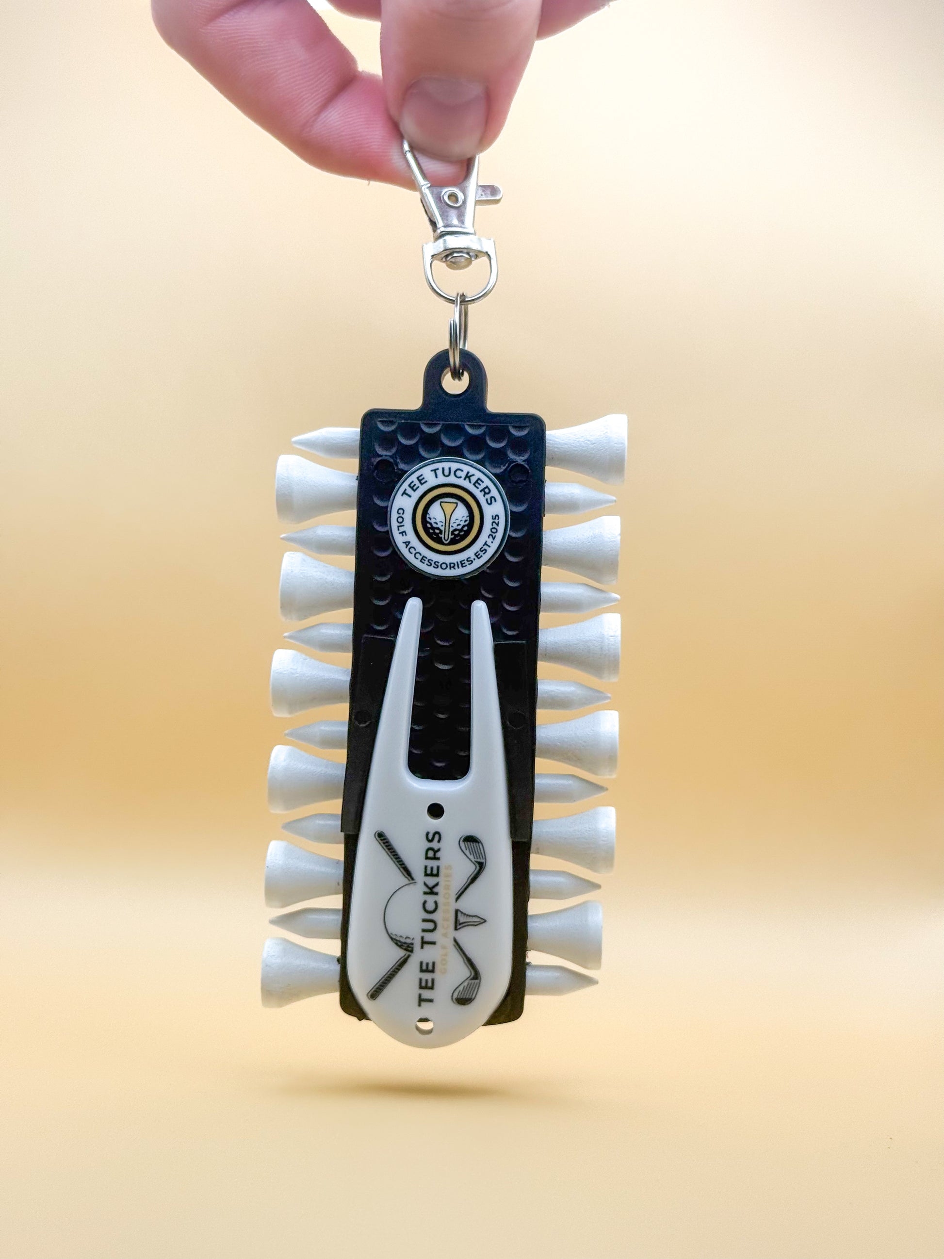 - Upgrade your golf game with the ultimate space-saving accessory designed for style, practicality, and performance. This All-in-One Golf Tee Holder is a must-have for any golfer who values efficiency and convenience on the course.